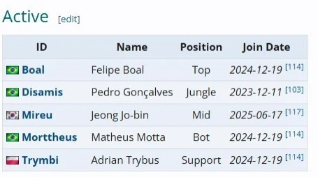 VKS队内中单和辅助为外援,而三名巴西选手此前并没有国际赛事参赛经验,韩援中单Mireu曾在2023年跟随拉美R7战队参加MSI和S赛入围赛阶段的比赛,而波兰辅助Trymbi曾在2021、2022跟随Rogue,2023年跟随FNC三次参加全球总决赛正赛阶段的比赛。
