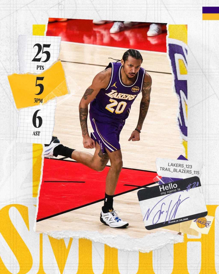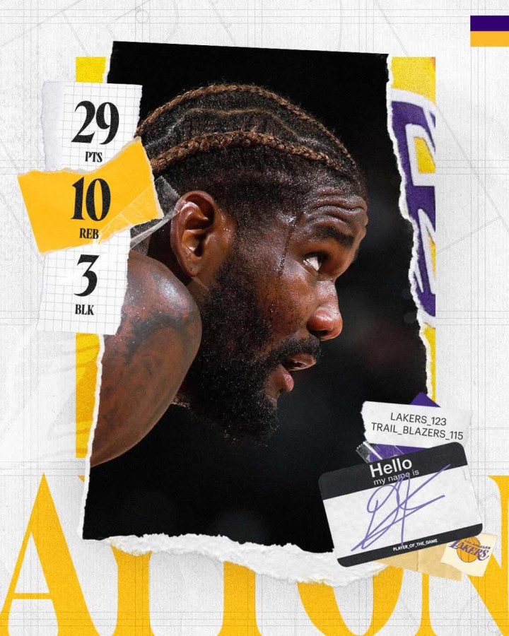 赛后,湖人社媒分享尼克-史密斯&艾顿海报:挺身而出,表现出色。