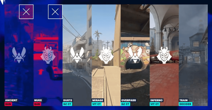 下半场易边再战。手枪局失利后,G2强起失败进入ECO局。第十六局,G2爆弹A区失败被ropz双杀,Vitality连续得分。第十八局,G2半起局HeavyGod英雄AK难有发挥,Vitality拿下赛点。最终,图三Vitality13-6G2,拿下自选图,Vitality大比分2-1拿到冠军点。