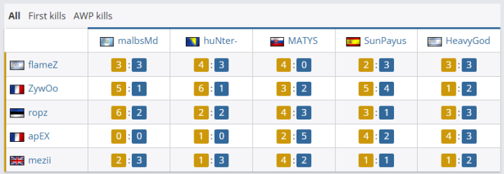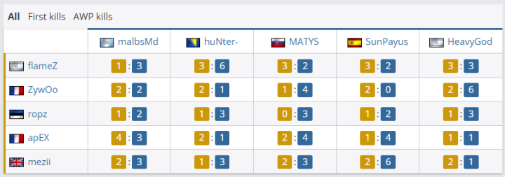 上半场G2选择防守方开局。手枪局失利后,G2强起失败进入经济局。第四局,Sunpayus大狙前压送出首杀,Vitality爆弹A区打成三打三守包残局,ZywOo双杀Vitality连续得分。第五局,Vitality进攻B区,hunter关键三杀,G2拿到第一分。第八局,双方工地交火G2打出一换二,Vitality进攻B区失败,G2扳平比分。第十一局,Vitality提速B区ZywOo首杀破局,ropz三杀Vitality追回一分。上半场双方战成6-6平。